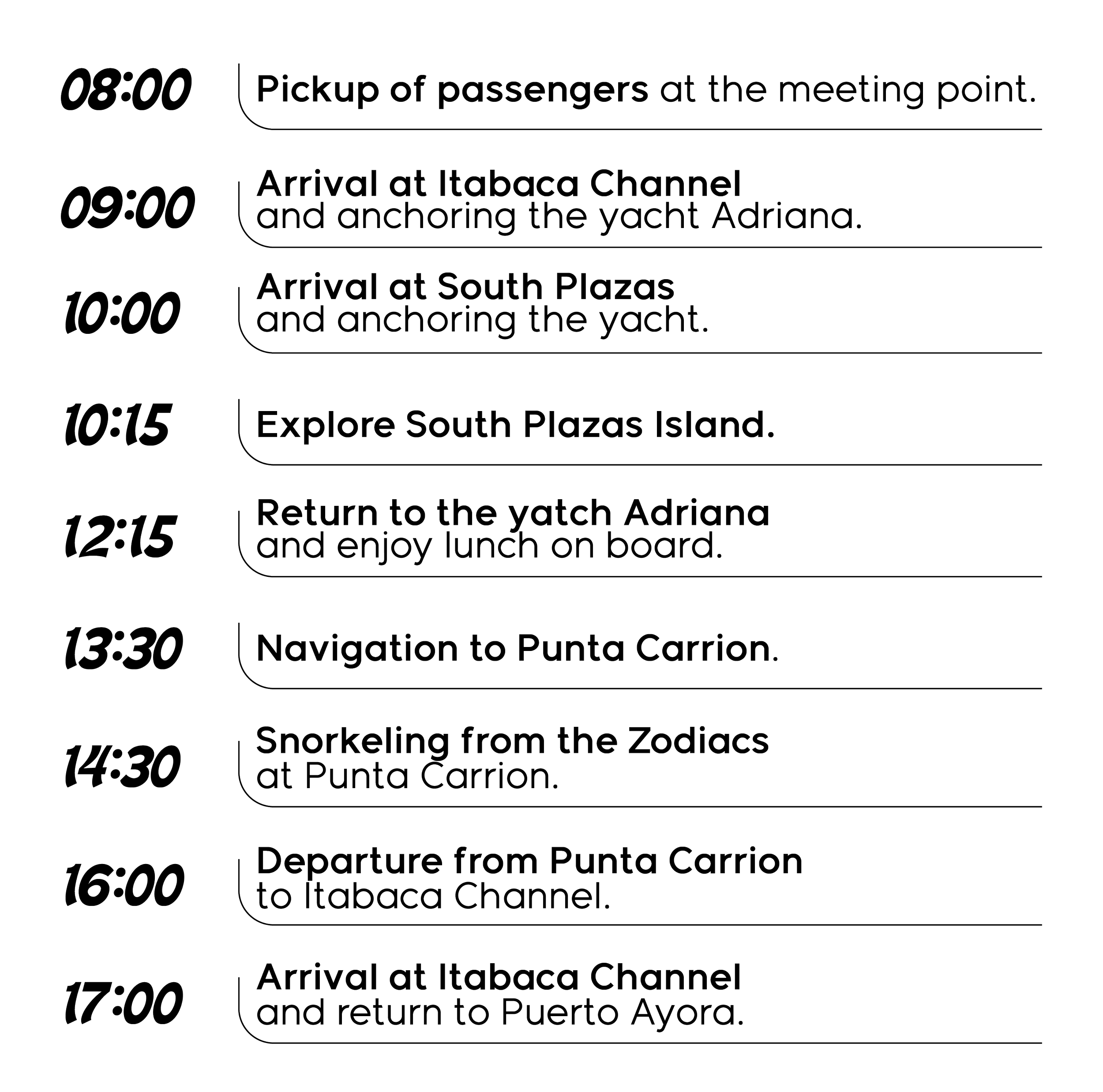 Snorkel gear, Lunch, Beverages such as water, coffee, and tea, Land transportation from the meeting point to Itabaca Channel & back, and Bilingual guide (English and Spanish).